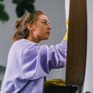 - Over de Stad, wier wit gepilaarde villa-huizen laag wegscholen in het geboomte der lanen en tuinen, hing een donzende geluideloosheid, in de windstille benauwdheid der avondlucht.